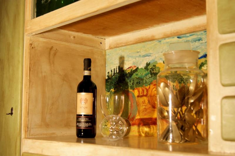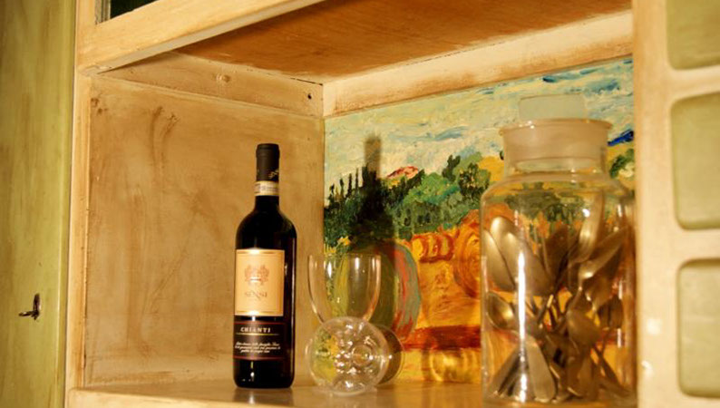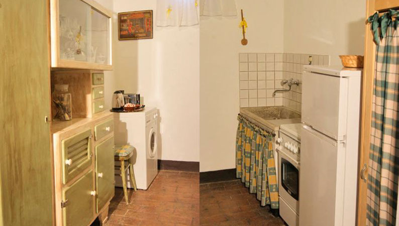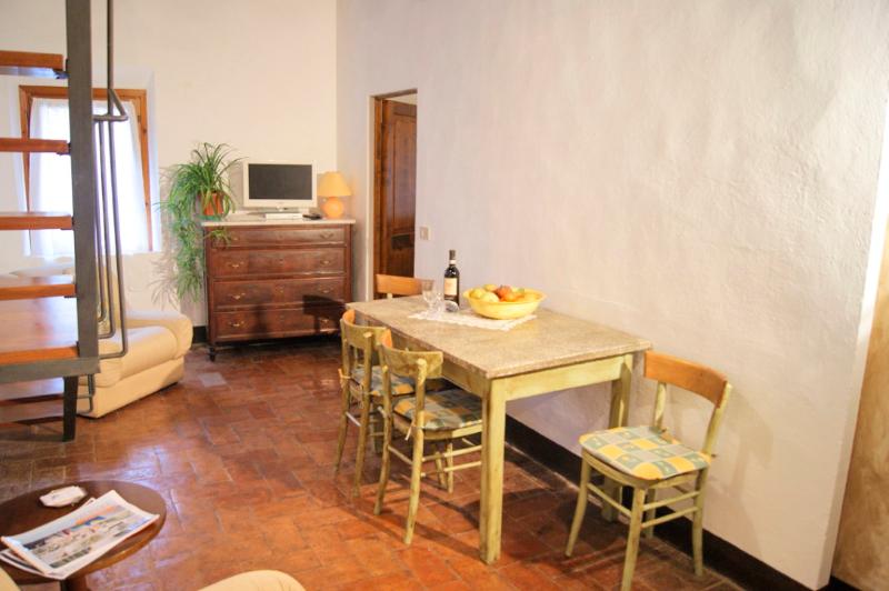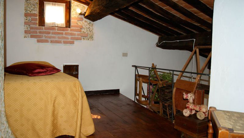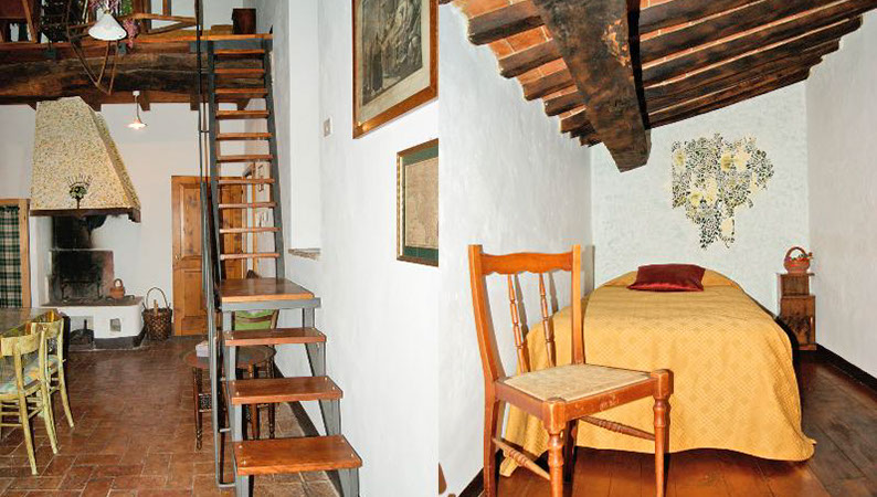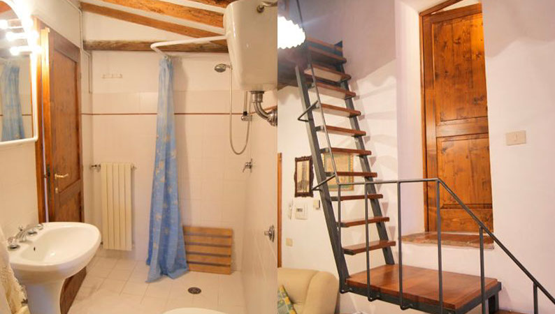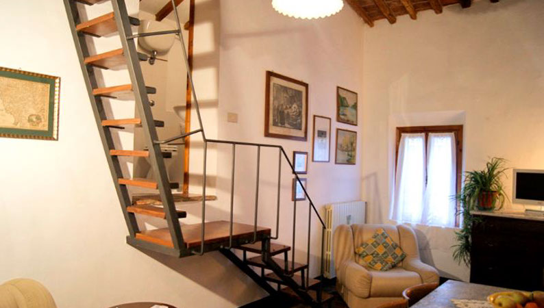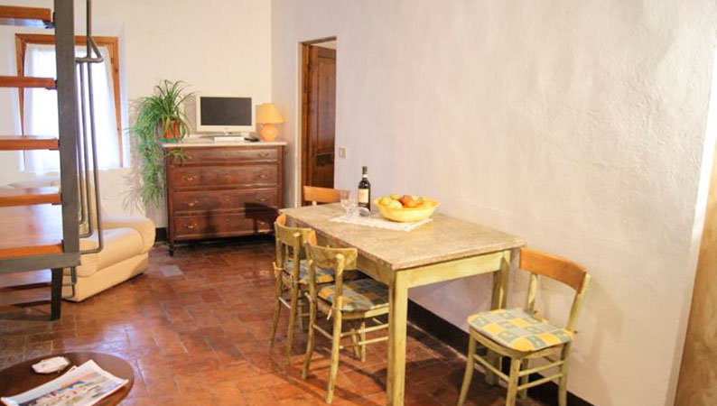 L'appartamento Girasole si trova al secondo piano, recentemente ristrutturato nel tipico stile rustico Toscano: il soffitto ha travi e travicelli in legno e il pavimento è ancora la terracotta originale.