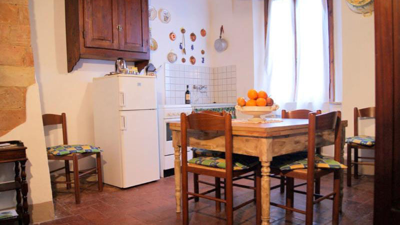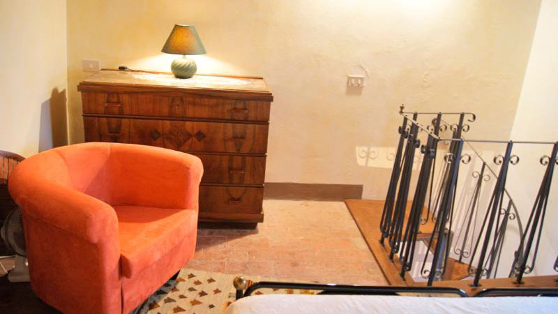 L'appartamento Margherita si trova al secondo piano, recentemente ristrutturato nel tipico stile rustico Toscano: il soffitto ha le travi e travicelli in legno e il pavimento è ancora la terracotta originale.
